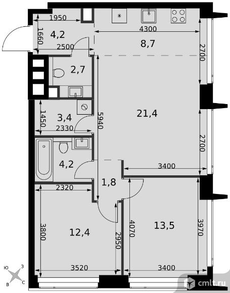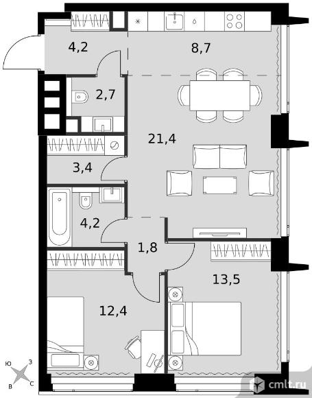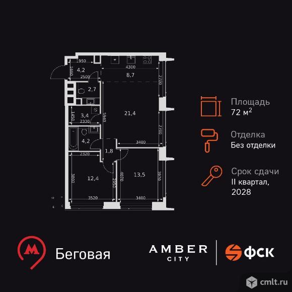 3-комнатная квартира 72,3 кв.м