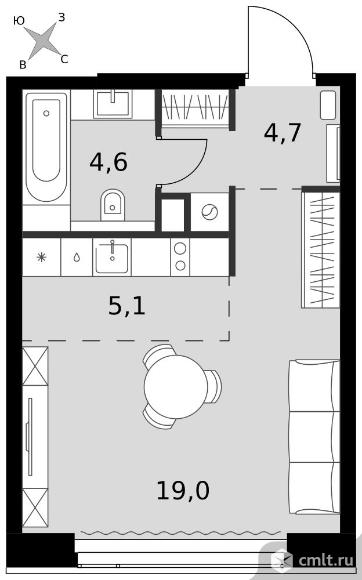 1-комнатная квартира 33,4 кв.м