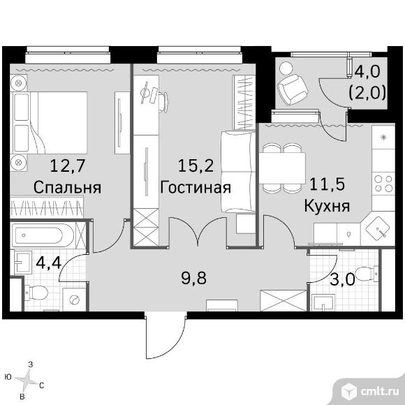 2-комнатная квартира 58,6 кв.м