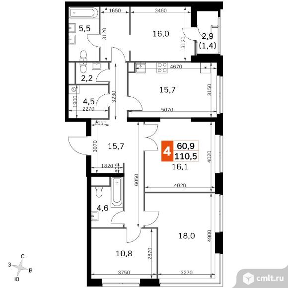 4-комнатная квартира 110,5 кв.м