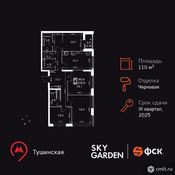 Жилой Комплекс бизнес-класса. Продаётся 4-к квартира номер 1335 общей площадью 110.5 кв.м. на 28-м этаже 30 этажного дома. Отделка Whitebox. Цена с учётом скидки! Особенности квартиры: - Мастер-зона с санузлом и гардеробной. Всё для вашего комфорта и удобства, включая личный санузел и гардероб. - Распашная планировка - отличное сочетание удобства и свободы. - Увеличенная ширина окна/окон - больше света и визуального простора. - Угловое остекление - свет и воздушность в каждой комнате. - Гостевой санузел - комфорт и удобство для ваших гостей. - Постирочная - организуйте пространство для стирки и сушки вещей. - Гибкая планировка - создайте пространство по своему вкусу. - Место для игры/занятия спортом - идеальное пространство для активных детей. - Можно оборудовать 2 или более рабочих места - пространство для нескольких человек. - Можно оборудовать рабочее место - комфорт для работы и учёбы. - Можно сделать распашные двери - удобный доступ и стильный акцент. - Просторная кухня - место для семейных ужинов и кулинарных экспериментов. - Просторная мягкая зона - комфорт и уют для отдыха всей семьи. - Линейная кухня - функциональность и практичность в одном решении. - Гардеробная - удобство для хранения и организации вещей. - Ниша под шкаф - компактное и удобное место для вещей. - Лоджия - уютное место для отдыха и тишины. Квартира с предчистовой отделкой (White box). Вам не придется заниматься черновыми и трудоёмкими работы, а чистовую отделку и дизайн - сделайте на свой вкус. Информация о комплексе: Sky Garden расположен в районе Покровское-Стрешнево. На территории этого района шумит листвой одноименный парк. Зеленый живописный район, реки и каналы поблизости, чистый свежий воздух из подмосковных листов - идеальное место, чтобы ощутить себя частью природы. При этом развитая образовательная, социальная и транспортная инфраструктура оставят вам все преимущества жизни в мегаполисе. Sky Garden - идеальный баланс между природной и городской средой. Транспортная доступность: Всего в 12 минутах пешком до м. Тушинская и 15 минутах до станции Тушинская МЦД. На автомобиле: 2 км до Волоколамского шоссе, 2,5 км до МКАД и 15 км до Садового кольца Внутренняя инфраструктура: К вашим услугам современные игровые площадки: тут ваши дети с удовольствием смогут лазить по бревнам, штурмовать горки и стараться не промокнуть, бегая под струями фонтана. В Sky Garden полно возможностей как для совсем маленьких, так и для взрослых. Предусмотрены активности: мастер классы по йоге на английском газоне, воркаут- площадка, велопарковки. Также в вашем распоряжении на территории комплекса будут: поликлиника, аптека, супермаркет, зона для отдыха, сухой фонтан и площадка для подростков. Пространство для работы, оборудованное кофепоинтом и удобными переговорными. Застройщик: ООО "СПЕЦИАЛИЗИРОВАННЫЙ ЗАСТРОЙЩИК "СТОЛИЦА СЕВЕРА". Проектная декларация на сайте наш.дом.рф 04.12.2025 01:37