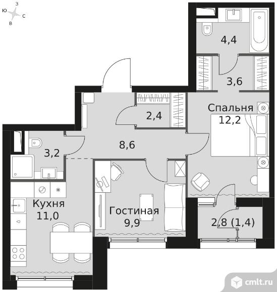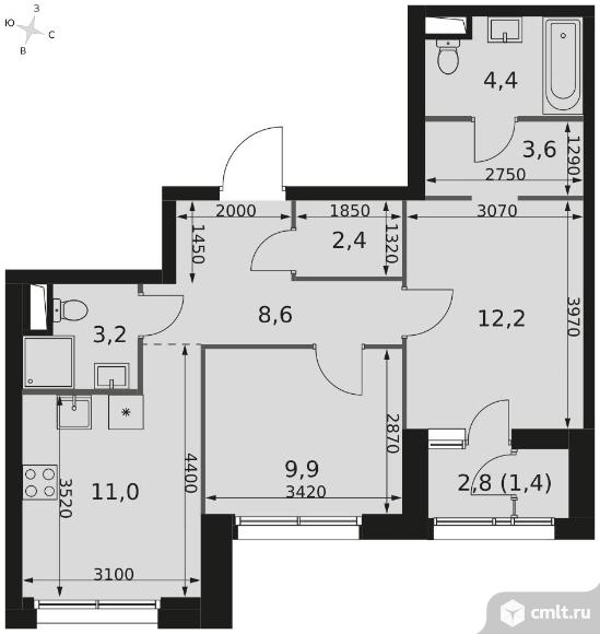 2-комнатная квартира 56,7 кв.м
