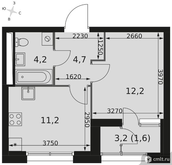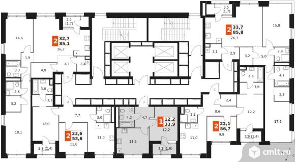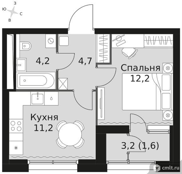 1-комнатная квартира 33,9 кв.м