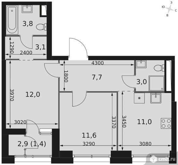 2-комнатная квартира 53,6 кв.м