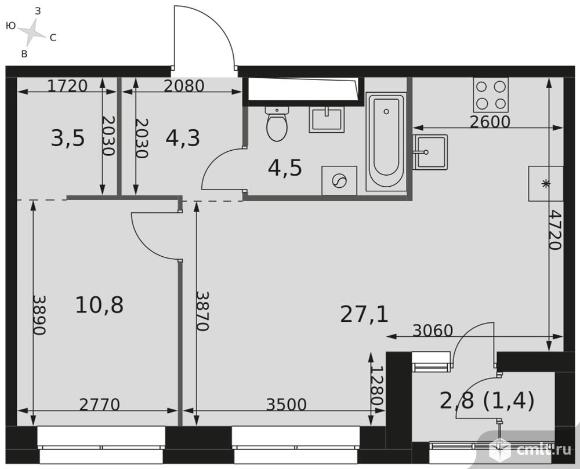 2-комнатная квартира 51,6 кв.м