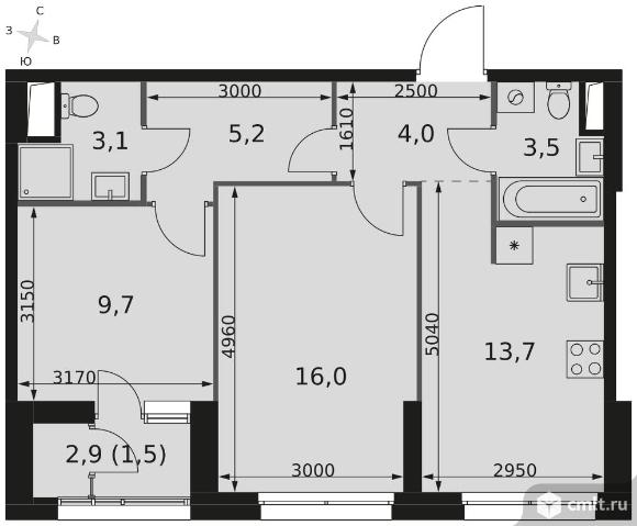 2-комнатная квартира 56,7 кв.м