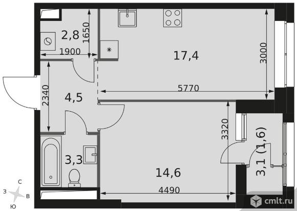 1-комнатная квартира 44,2 кв.м