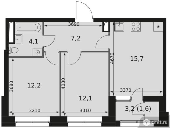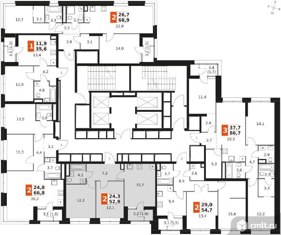 2-комнатная квартира 52,9 кв.м