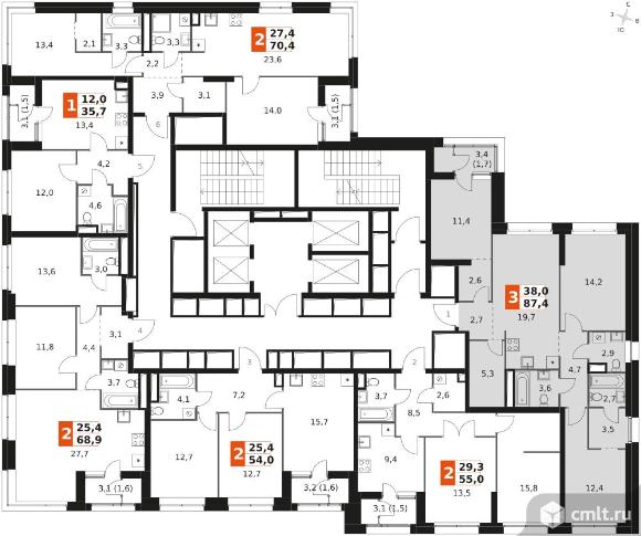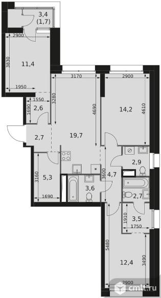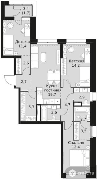 3-комнатная квартира 87,4 кв.м