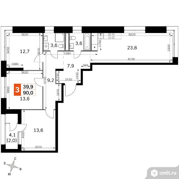 3-комнатная квартира 89,4 кв.м
