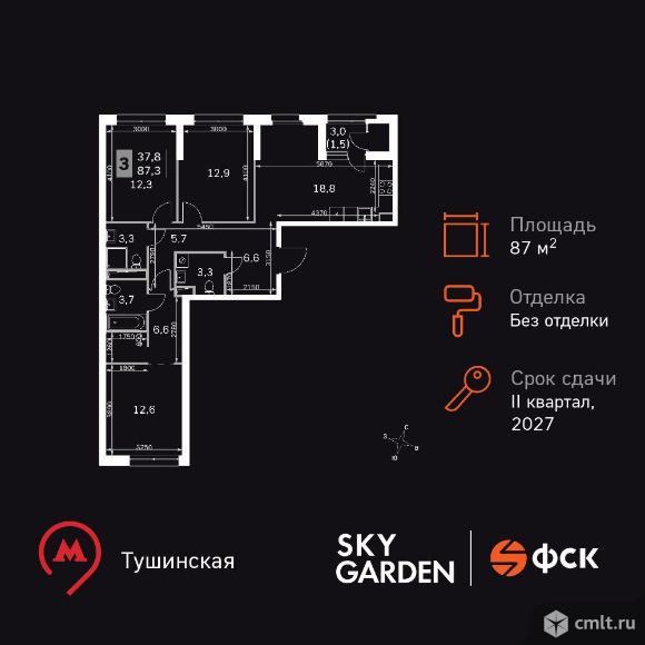 Жилой Комплекс бизнес-класса. Продаётся 3-к квартира номер 8 общей площадью 87.3 кв.м. на 2-м этаже 29 этажного дома. Без отделки. Цена с учётом скидки! Особенности квартиры: - Мастер-зона с санузлом и гардеробной. Всё для вашего комфорта и удобства, включая личный санузел и гардероб. - Просторная спальня, в которой можно разместить большую кровать. - Распашная планировка - отличное сочетание удобства и свободы. - Гостевой санузел - комфорт и удобство для ваших гостей. - Душ помимо ванной - дополнительное удобство для вашей семьи. - Евроформат - просторное и удобное жилье с отличной планировкой. - Кухня-гостиная - идеальное пространство для встреч с близкими. - Возможность добавить спальное место - дополнительный комфорт для гостей. - Ниша под шкаф - компактное и удобное место для вещей. - Просторная лоджия - идеальное место для уютных вечеров. Информация о комплексе: Sky Garden расположен в районе Покровское-Стрешнево. На территории этого района шумит листвой одноименный парк. Зеленый живописный район, реки и каналы поблизости, чистый свежий воздух из подмосковных листов - идеальное место, чтобы ощутить себя частью природы. При этом развитая образовательная, социальная и транспортная инфраструктура оставят вам все преимущества жизни в мегаполисе. Sky Garden - идеальный баланс между природной и городской средой. Транспортная доступность: Всего в 12 минутах пешком до м. Тушинская и 15 минутах до станции Тушинская МЦД. На автомобиле: 2 км до Волоколамского шоссе, 2,5 км до МКАД и 15 км до Садового кольца Внутренняя инфраструктура: К вашим услугам современные игровые площадки: тут ваши дети с удовольствием смогут лазить по бревнам, штурмовать горки и стараться не промокнуть, бегая под струями фонтана. В Sky Garden полно возможностей как для совсем маленьких, так и для взрослых. Предусмотрены активности: мастер классы по йоге на английском газоне, воркаут- площадка, велопарковки. Также в вашем распоряжении на территории комплекса будут: поликлиника, аптека, супермаркет, зона для отдыха, сухой фонтан и площадка для подростков. Пространство для работы, оборудованное кофепоинтом и удобными переговорными. Застройщик: ООО "СПЕЦИАЛИЗИРОВАННЫЙ ЗАСТРОЙЩИК "СТОЛИЦА СЕВЕРА". Проектная декларация на сайте наш.дом.рф 04.12.2025 01:37