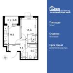 1-комнатная квартира 41,7 кв.м