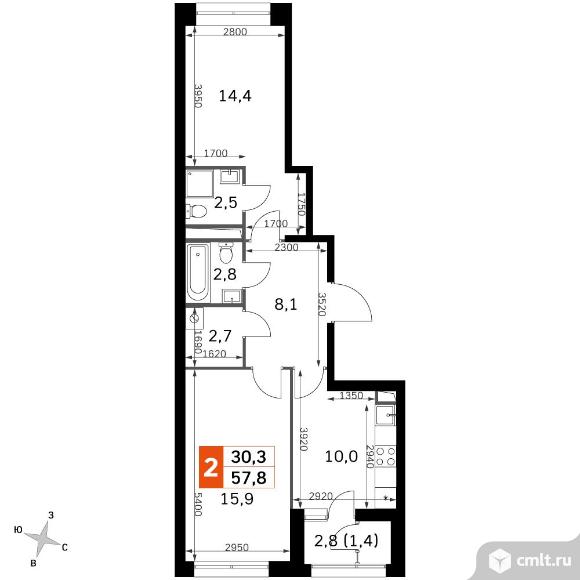 2-комнатная квартира 57,8 кв.м