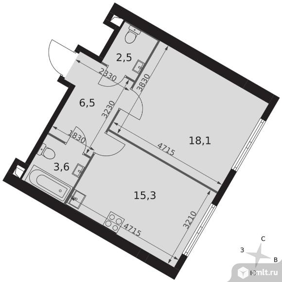 1-комнатная квартира 46 кв.м