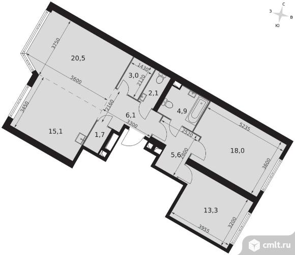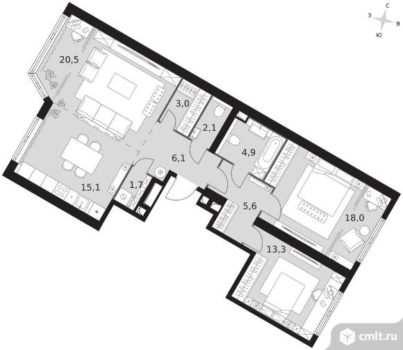 3-комнатная квартира 90,3 кв.м