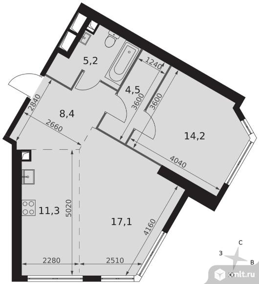 2-комнатная квартира 60,7 кв.м