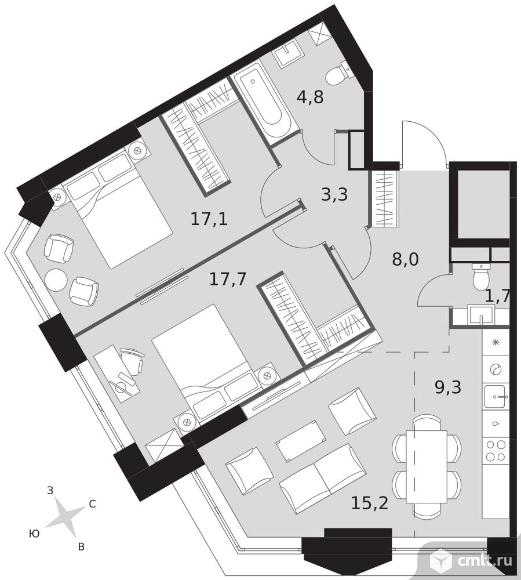 Перейти к актуальным объявлениям рубрики Квартиры. 3-комнатная квартира 77,1 кв.м