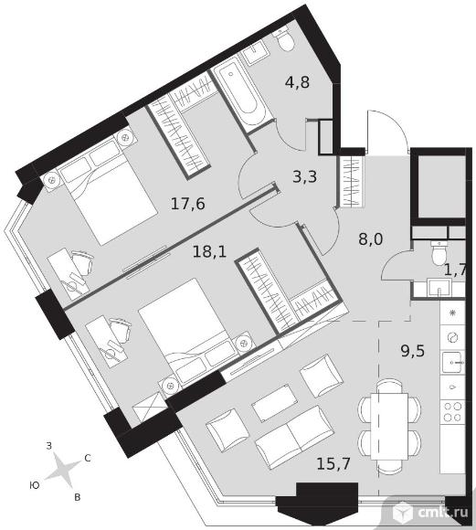 3-комнатная квартира 78,7 кв.м