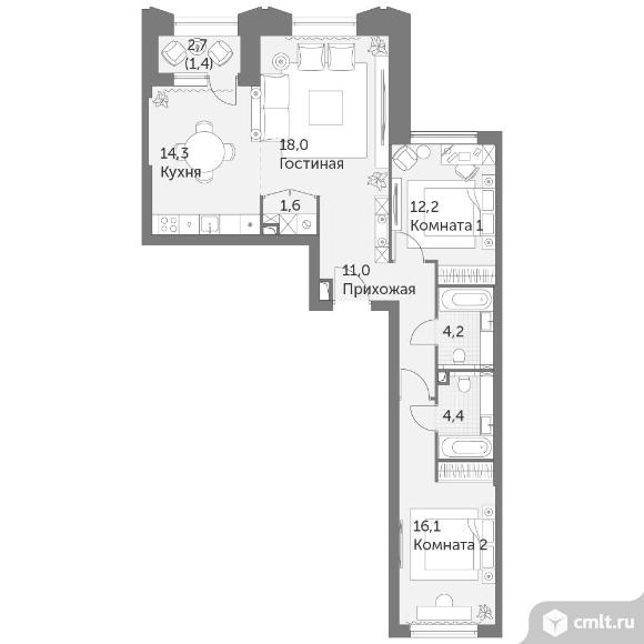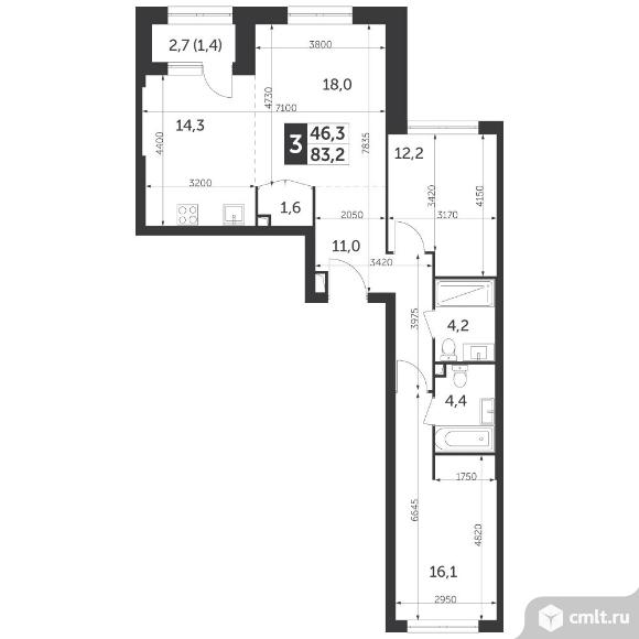 3-комнатная квартира 83,2 кв.м