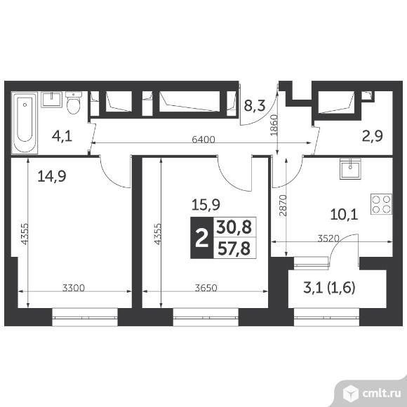 2-комнатная квартира 57,8 кв.м