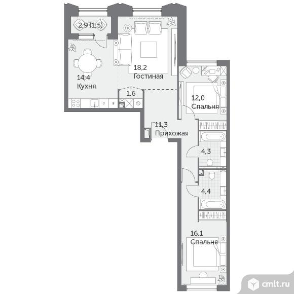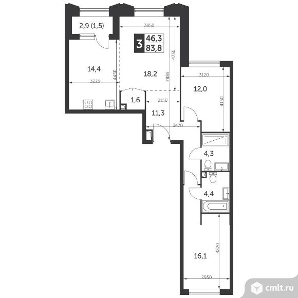 3-комнатная квартира 83,8 кв.м