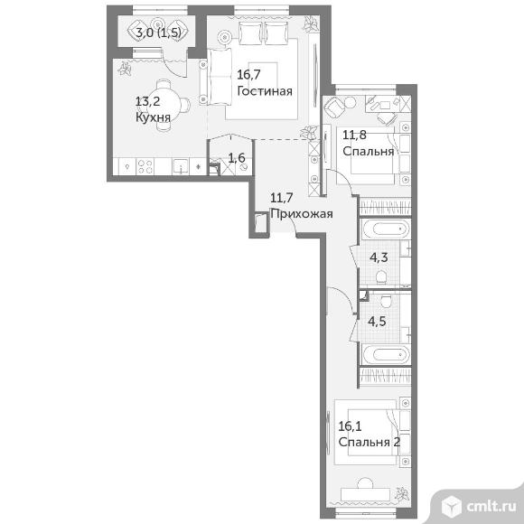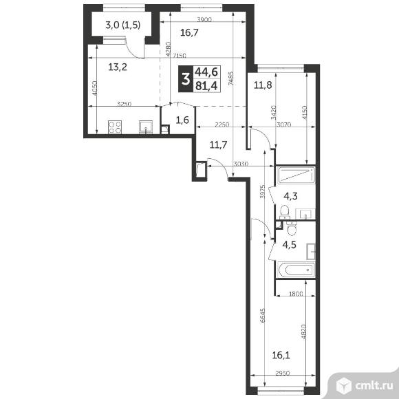 3-комнатная квартира 81,4 кв.м