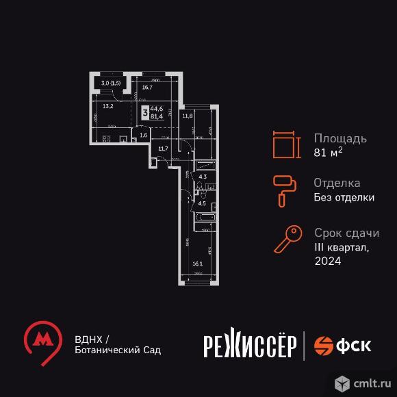 Жилой Комплекс премиум-класса. Продаётся 3-к квартира номер 809 общей площадью 81.4 кв.м. на 36-м этаже 38 этажного дома. Без отделки. Цена с учётом скидки! Особенности квартиры: - Просторная спальня, в которой можно разместить большую кровать. - Угловая планировка - больше пространства для ваших идей. - Панорамное окно (1 и более) - раскрывает просторы вашего дома. - Гостевой санузел - комфорт и удобство для ваших гостей. - Постирочная - организуйте пространство для стирки и сушки вещей. - Евроформат - просторное и удобное жилье с отличной планировкой. - Гибкая планировка - создайте пространство по своему вкусу. - Место для игры/занятия спортом - идеальное пространство для активных детей. - Можно оборудовать 2 или более рабочих места - пространство для нескольких человек. - Просторная мягкая зона - комфорт и уют для отдыха всей семьи. - Линейная кухня - функциональность и практичность в одном решении. - Наличие острова на кухне - удобство и стиль для вашей кухни. - Возможность добавить спальное место - дополнительный комфорт для гостей. - Лоджия - уютное место для отдыха и тишины. - Тёплая лоджия - пространство для отдыха в любое время года. Информация о комплексе: Расположение корпусов комплекса в виде трехконечной звезды, а также разная высотность корпусов позволили сохранить отличные виды практически для всех квартир, находящихся выше уровня деревьев. Тем более видовые характеристики района вдохновляют на достижение новых горизонтов. В каждой квартире подключен базовый пакет “Умная квартира” забудьте о беспокойстве о протечке; настройте свои сценарии управления техникой и электричеством; общайтесь с “Умной квартирой” голосом. А наличие кладовых позволит вам поддерживать идеальный порядок и уют в вашей квартире! Транспортная доступность: До метро «Проспект мира» - 3 минуты пешком, 4 минуты до СВХ, 9 минут до ТТК, 11 минут до МКАД, 12 минут до Садового кольца Внутренняя инфраструктура: Внешняя территория комплекса условно делится на три зоны. Основная входная группа представляет собой открытую зону коммерческих помещений (кофейня, аптека, салон красоты). В закрытой зоне внутреннего двора время течет как в замедленной съемке. Скамейки, шезлонги, пуфы, садовые качели приглашают расслабленно провести часок-другой наедине с собой или в небольшой компании. В восточной части территории расположены игровые площадки для детей разных возрастов, а также спортивные площадки. Авторам проекта архитектурному бюро ICube удалось воссоздать атмосферу детских фильмов! 04.12.2025 01:36