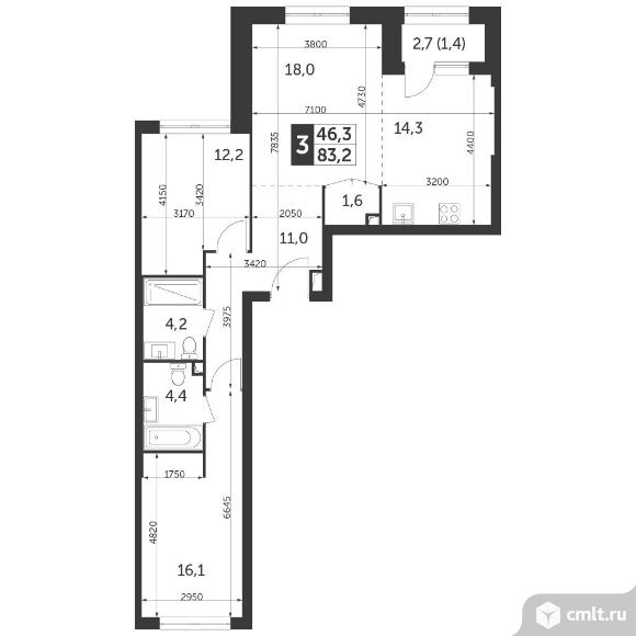 3-комнатная квартира 83,2 кв.м