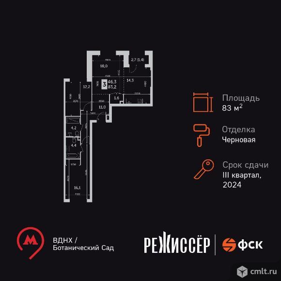Жилой Комплекс премиум-класса. Продаётся 3-к квартира номер 848 общей площадью 83.2 кв.м. на 7-м этаже 38 этажного дома. Отделка Whitebox. Цена с учётом скидки! Особенности квартиры: - Просторная спальня, в которой можно разместить большую кровать. - Угловая планировка - больше пространства для ваших идей. - Увеличенное остекление - больше света и простора в вашем доме. - Гостевой санузел - комфорт и удобство для ваших гостей. - Постирочная - организуйте пространство для стирки и сушки вещей. - Евроформат - просторное и удобное жилье с отличной планировкой. - Гибкая планировка - создайте пространство по своему вкусу. - Место для игры/занятия спортом - идеальное пространство для активных детей. - Можно оборудовать 2 или более рабочих места - пространство для нескольких человек. - Просторная мягкая зона - комфорт и уют для отдыха всей семьи. - Линейная кухня - функциональность и практичность в одном решении. - Наличие острова на кухне - удобство и стиль для вашей кухни. - Возможность добавить спальное место - дополнительный комфорт для гостей. - Лоджия - уютное место для отдыха и тишины. - Тёплая лоджия - пространство для отдыха в любое время года. Квартира с предчистовой отделкой (White box). Вам не придется заниматься черновыми и трудоёмкими работы, а чистовую отделку и дизайн - сделайте на свой вкус. Информация о комплексе: Расположение корпусов комплекса в виде трехконечной звезды, а также разная высотность корпусов позволили сохранить отличные виды практически для всех квартир, находящихся выше уровня деревьев. Тем более видовые характеристики района вдохновляют на достижение новых горизонтов. В каждой квартире подключен базовый пакет “Умная квартира” забудьте о беспокойстве о протечке; настройте свои сценарии управления техникой и электричеством; общайтесь с “Умной квартирой” голосом. А наличие кладовых позволит вам поддерживать идеальный порядок и уют в вашей квартире! Транспортная доступность: До метро «Проспект мира» - 3 минуты пешком, 4 минуты до СВХ, 9 минут до ТТК, 11 минут до МКАД, 12 минут до Садового кольца Внутренняя инфраструктура: Внешняя территория комплекса условно делится на три зоны. Основная входная группа представляет собой открытую зону коммерческих помещений (кофейня, аптека, салон красоты). В закрытой зоне внутреннего двора время течет как в замедленной съемке. Скамейки, шезлонги, пуфы, садовые качели приглашают расслабленно провести часок-другой наедине с собой или в небольшой компании. В восточной части территории расположены игровые площадки для детей разных возрастов, а также спортивные площадки. Авторам проекта архитектурному бюро ICube удалось воссоздать атмосферу детских фильмов! 04.12.2025 01:36
