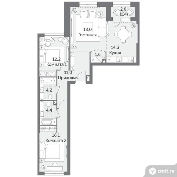 3-комнатная квартира 83,2 кв.м