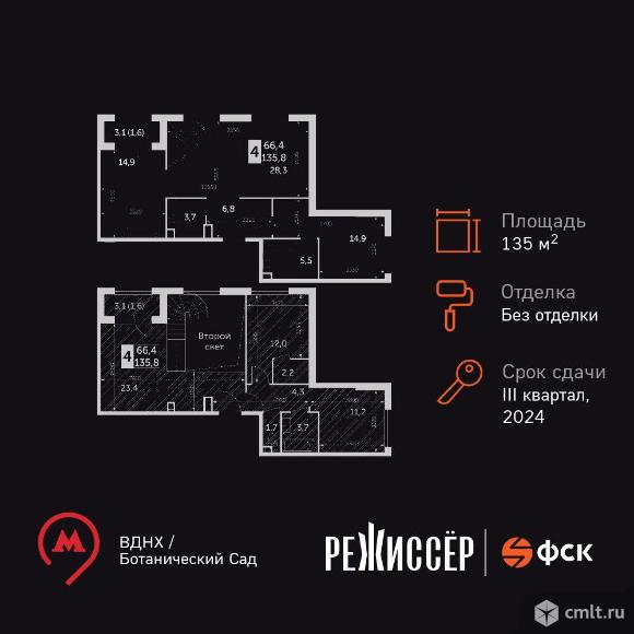 Жилой Комплекс премиум-класса. Продаётся 4-к квартира номер 968 общей площадью 135.8 кв.м. на 35-м этаже 38 этажного дома. Без отделки. Цена с учётом скидки! Особенности квартиры: - Мастер-зона с гардеробной. Просторное место для отдыха и удобного хранения вещей. - Мастер-зона с санузлом. Уют и комфорт в одном пространстве. - Просторная спальня, в которой можно разместить большую кровать. - Угловая планировка - больше пространства для ваших идей. - Увеличенное количество окон - дополнительное освещение и свежий воздух. - Панорамное окно (1 и более) - раскрывает просторы вашего дома. - Гостевой санузел - комфорт и удобство для ваших гостей. - Раздельный санузел - больше удобства для всех членов семьи. - Евроформат - просторное и удобное жилье с отличной планировкой. - Гибкая планировка - создайте пространство по своему вкусу. - Место для игры/занятия спортом - идеальное пространство для активных детей. - Дополнительный вход - удобство для семьи и гостей. - Увеличенная высота потолков - ощущение простора и легкости. - Можно оборудовать 2 или более рабочих места - пространство для нескольких человек. - Двухуровневая квартира - пространство и стиль в одном. - Второй свет - уникальная атмосфера с открытыми пространствами. - Просторная мягкая зона - комфорт и уют для отдыха всей семьи. - Наличие острова на кухне - удобство и стиль для вашей кухни. - Возможность добавить спальное место - дополнительный комфорт для гостей. - Гардеробная - удобство для хранения и организации вещей. - Ниша под шкаф - компактное и удобное место для вещей. - Лоджия - уютное место для отдыха и тишины. - Тёплая лоджия - пространство для отдыха в любое время года. Информация о комплексе: Расположение корпусов комплекса в виде трехконечной звезды, а также разная высотность корпусов позволили сохранить отличные виды практически для всех квартир, находящихся выше уровня деревьев. Тем более видовые характеристики района вдохновляют на достижение новых горизонтов. В каждой квартире подключен базовый пакет “Умная квартира” забудьте о беспокойстве о протечке; настройте свои сценарии управления техникой и электричеством; общайтесь с “Умной квартирой” голосом. А наличие кладовых позволит вам поддерживать идеальный порядок и уют в вашей квартире! Транспортная доступность: До метро «Проспект мира» - 3 минуты пешком, 4 минуты до СВХ, 9 минут до ТТК, 11 минут до МКАД, 12 минут до Садового кольца Внутренняя инфраструктура: Внешняя территория комплекса условно делится на три зоны. Основная входная группа представляет собой открытую зону коммерческих помещений (кофейня, аптека, салон красоты). В закрытой зоне внутреннего двора время течет как в замедленной съемке. 04.12.2025 01:36