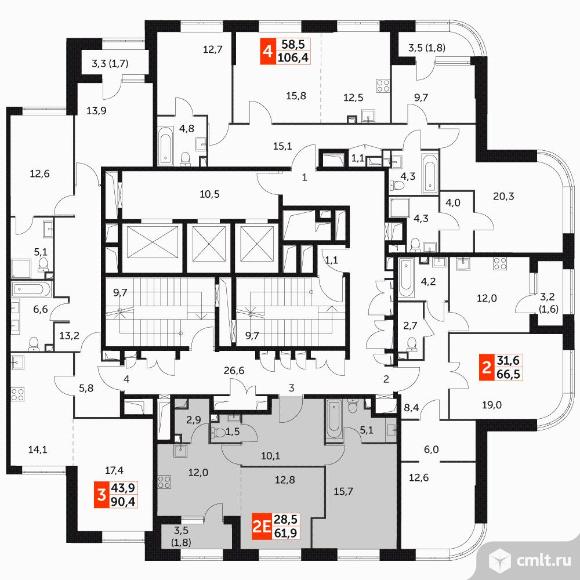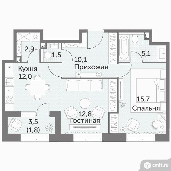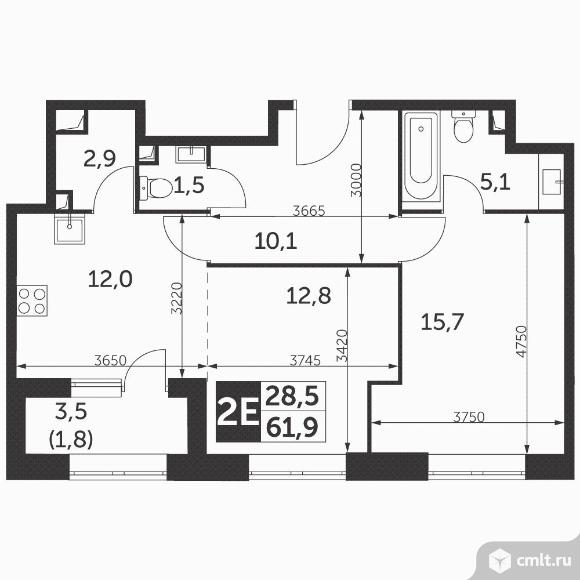 2-комнатная квартира 61,9 кв.м