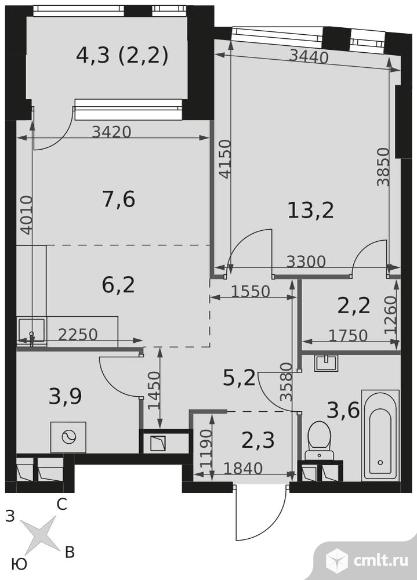 2-комнатная квартира 46,4 кв.м