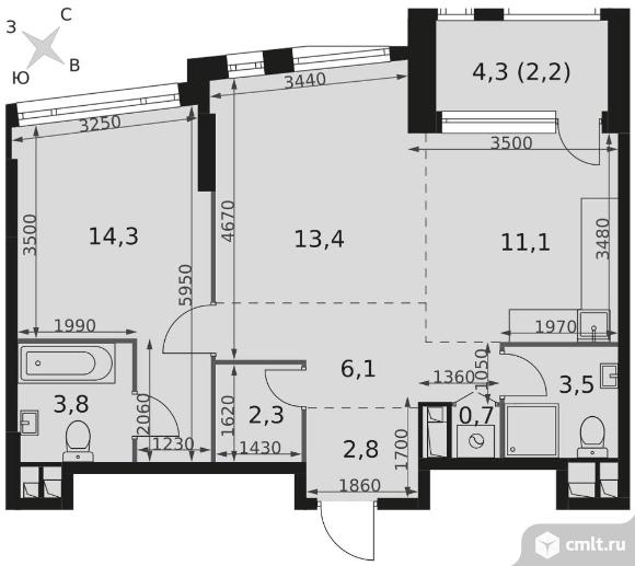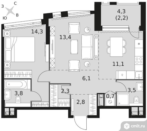 2-комнатная квартира 60,2 кв.м