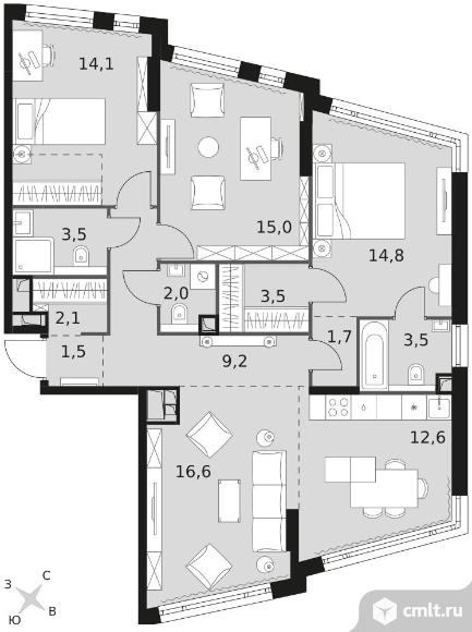 4-комнатная квартира 100,1 кв.м