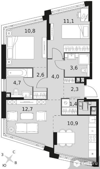 3-комнатная квартира 64,1 кв.м