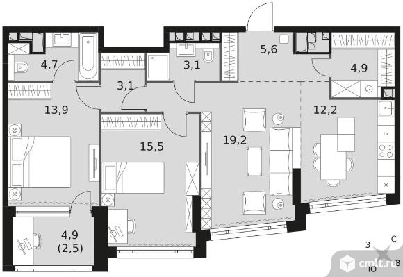 3-комнатная квартира 84,7 кв.м