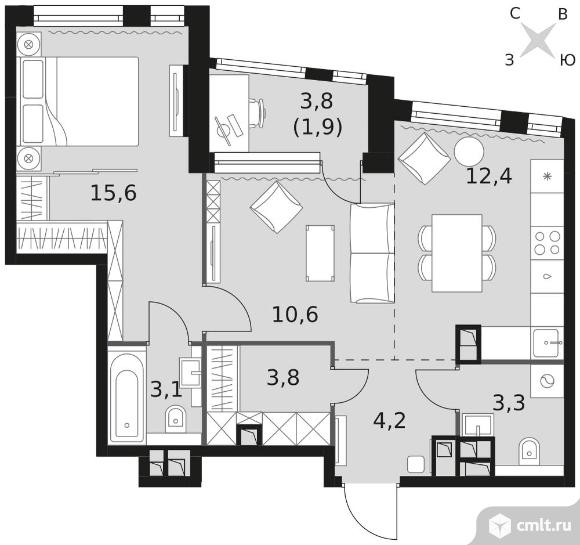 Перейти к актуальным объявлениям рубрики Квартиры. 2-комнатная квартира 54,9 кв.м