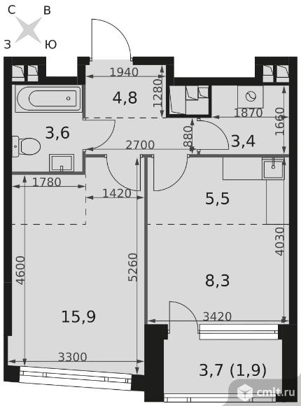 1-комнатная квартира 43,5 кв.м