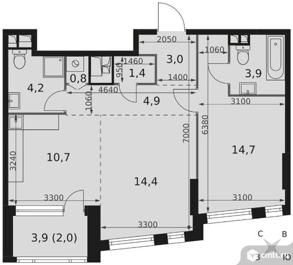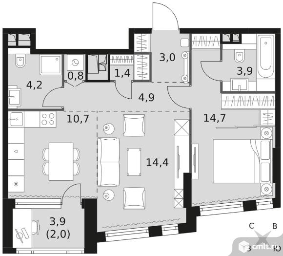 2-комнатная квартира 60 кв.м