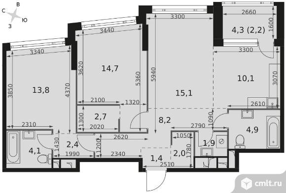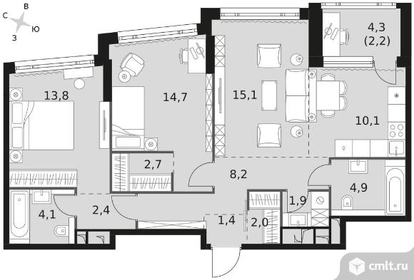 3-комнатная квартира 83,5 кв.м