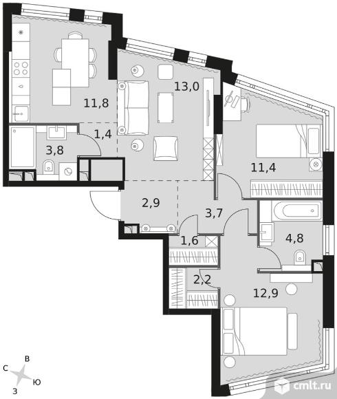 3-комнатная квартира 69,5 кв.м