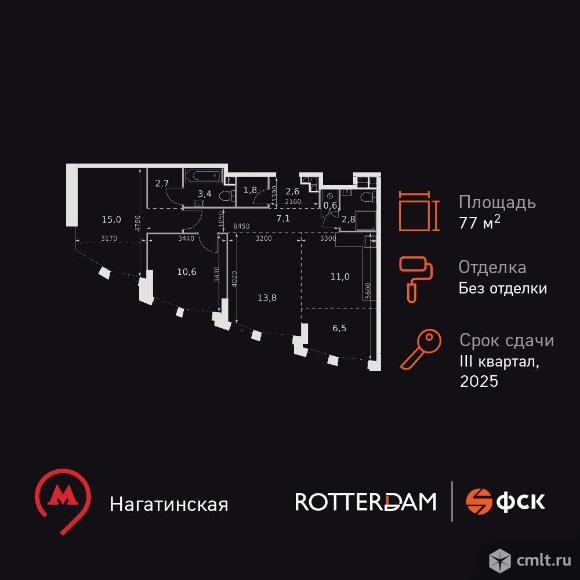 Жилой Комплекс бизнес-класса. Продаётся 3-к квартира номер 13 общей площадью 77.9 кв.м. на 4-м этаже 20 этажного дома. Без отделки. Цена с учётом скидки! Особенности квартиры: - Мастер-зона с санузлом и гардеробной. Всё для вашего комфорта и удобства, включая личный санузел и гардероб. - Линейная планировка - максимальная функциональность и удобство. - Угловая планировка - больше пространства для ваших идей. - Увеличенное количество окон - дополнительное освещение и свежий воздух. - Угловое остекление - свет и воздушность в каждой комнате. - Гостевой санузел - комфорт и удобство для ваших гостей. - Душ помимо ванной - дополнительное удобство для вашей семьи. - Ниша под стиральную машину - удобство и экономия пространства. - Евроформат - просторное и удобное жилье с отличной планировкой. - Гибкая планировка - создайте пространство по своему вкусу. - Место для игры/занятия спортом - идеальное пространство для активных детей. - Просторная мягкая зона - комфорт и уют для отдыха всей семьи. - Гардеробная - удобство для хранения и организации вещей. Информация о комплексе: В ЖК Роттердам отличное расположение, которое позволит вам выбирать свой сегодняшняшний маршрут и транспорт исходя из настроения, целей и погоды. Отсюда удобно добираться в центр как на метро станция находится в пешей доступности, так и на автомобиле. Варшавское шоссе связывает жилой комплекс с ТТК, а через Люсиновскую и Мытную улицы с Садовым кольцом. В качестве альтернативного маршрута можно использовать Нагатинскую набережную: дорога вдоль Москва-реки приведет к Кремлю и Павелецкому вокзалу. Для неспешной поездки предусмотрены трамвайные маршруты, а в теплое время года веломаршруты вдоль реки. Транспортная доступность: Всего в 5 минутах пешком до метро Нагатинская и 8 минутах от МЦК Верхние Котлы. Рядом Аэроэкспресс до метро Домодево. До ТТК 2,2 км и 4,9 км до Садового кольца. Внутренняя инфраструктура: Если вы ищете идеальный баланс между отдыхом и работой и обладаете активной жизненной позицией - ЖК Роттердам вам понравится. В ЖК: зоны коворкинга, плейхаб и детские площадки для отдыха всей семьей. Близость к деловому центру Москвы, в окружении 5 парков, рядом спортивные и развлекательные центры Если вы любите живописные виды и долгие прогулки - ЖК Роттердам - отличный вариант для вас, так как он расположен прямо на Нагатинской набережной с выходом на Москву реку! В ЖК Роттердам соблюден баланс между высоткой и малоэтатажным зданием, которое не потеряло ощущение уюта и не создает впечатление городских джунглей Если вы любите быть на высоте и без ограничений - выбирайте верхние этажи Для тех, кто ценит комфорт и собственное время Для тех, кто ценит комфорт и личное пространство Для тех, кому важен комфорт, безопасность и личное пространство на предомовой территории Застройщик: ООО "СПЕЦИАЛИЗИРОВАННЫЙ ЗАСТРОЙЩИК "ЗАПАД СТОЛИЦЫ". Проектная декларация на сайте наш.дом.рф 04.12.2025 01:37