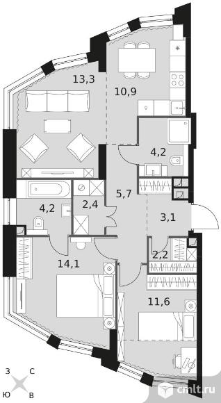 3-комнатная квартира 71,7 кв.м