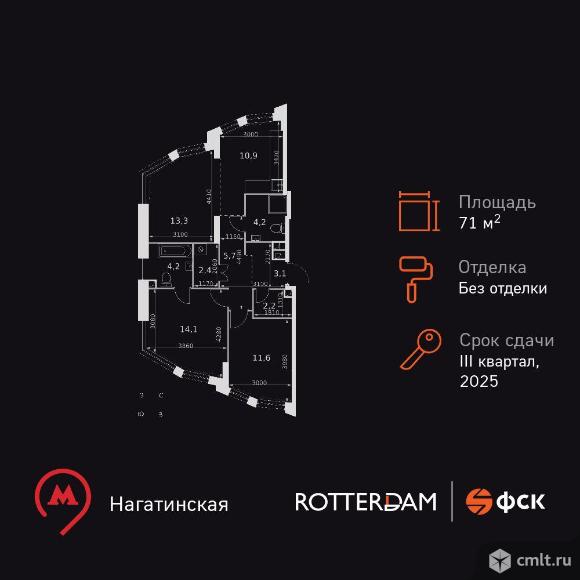 Жилой Комплекс бизнес-класса. Продаётся 3-к квартира номер 108 общей площадью 71.7 кв.м. на 2-м этаже 20 этажного дома. Без отделки. Цена с учётом скидки! Особенности квартиры: - Мастер-зона с санузлом. Уют и комфорт в одном пространстве. - Просторная спальня, в которой можно разместить большую кровать. - Угловая планировка - больше пространства для ваших идей. - Мало квартир на этаже - уединение и тишина. - Окно в ванной - натуральное освещение для уюта и комфорта. - Угловое остекление - свет и воздушность в каждой комнате. - Гостевой санузел - комфорт и удобство для ваших гостей. - Душ помимо ванной - дополнительное удобство для вашей семьи. - Постирочная - организуйте пространство для стирки и сушки вещей. - Евроформат - просторное и удобное жилье с отличной планировкой. - Гибкая планировка - создайте пространство по своему вкусу. - Место для игры/занятия спортом - идеальное пространство для активных детей. - Просторная мягкая зона - комфорт и уют для отдыха всей семьи. - Возможность добавить спальное место - дополнительный комфорт для гостей. - Гардеробная - удобство для хранения и организации вещей. - Ниша под шкаф - компактное и удобное место для вещей. Информация о комплексе: В ЖК Роттердам отличное расположение, которое позволит вам выбирать свой сегодняшняшний маршрут и транспорт исходя из настроения, целей и погоды. Отсюда удобно добираться в центр как на метро станция находится в пешей доступности, так и на автомобиле. Варшавское шоссе связывает жилой комплекс с ТТК, а через Люсиновскую и Мытную улицы с Садовым кольцом. В качестве альтернативного маршрута можно использовать Нагатинскую набережную: дорога вдоль Москва-реки приведет к Кремлю и Павелецкому вокзалу. Для неспешной поездки предусмотрены трамвайные маршруты, а в теплое время года веломаршруты вдоль реки. Транспортная доступность: Всего в 5 минутах пешком до метро Нагатинская и 8 минутах от МЦК Верхние Котлы. Рядом Аэроэкспресс до метро Домодево. До ТТК 2,2 км и 4,9 км до Садового кольца. Внутренняя инфраструктура: Если вы ищете идеальный баланс между отдыхом и работой и обладаете активной жизненной позицией - ЖК Роттердам вам понравится. В ЖК: зоны коворкинга, плейхаб и детские площадки для отдыха всей семьей. Застройщик: ООО "СПЕЦИАЛИЗИРОВАННЫЙ ЗАСТРОЙЩИК "ЗАПАД СТОЛИЦЫ". Проектная декларация на сайте наш.дом.рф 04.12.2025 01:37