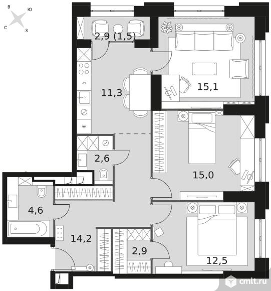 3-комнатная квартира 79,7 кв.м