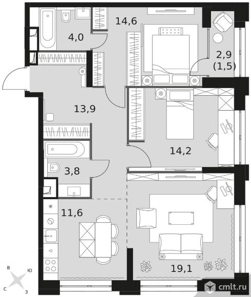 Перейти к актуальным объявлениям рубрики Квартиры. 3-комнатная квартира 82,7 кв.м