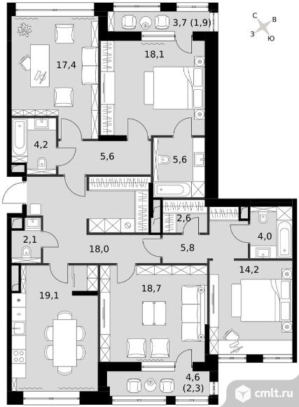 4-комнатная квартира 139,2 кв.м