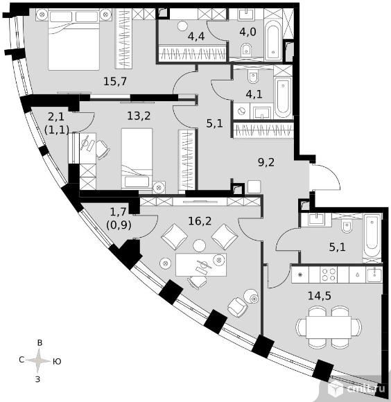 3-комнатная квартира 93,2 кв.м