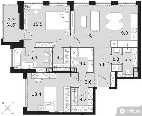 3-комнатная квартира 84,3 кв.м